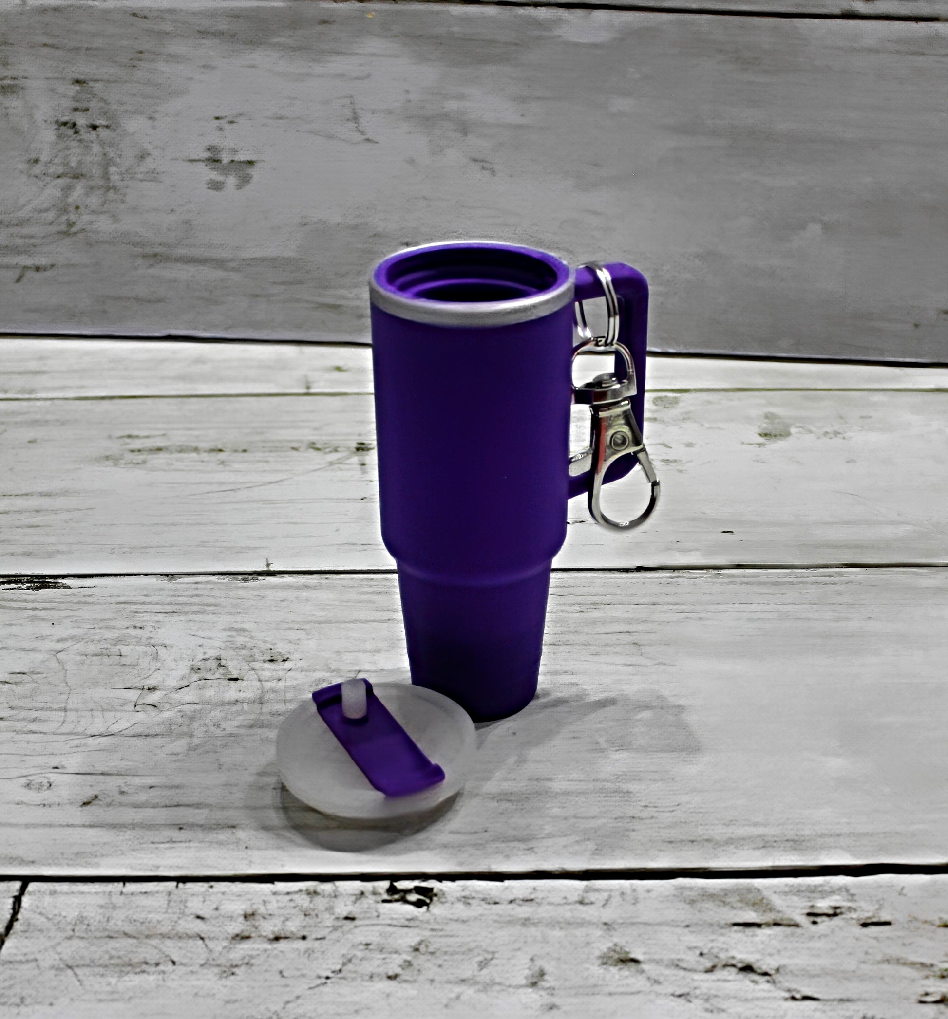 Precision printed with high-quality PLA filament, the tumbler is designed for both function and style. The smooth, screw-top lid ensures a tight seal, keeping contents protected and preventing spills. The handy clip keychain allows you to attach it to backpacks, purses, or other keychains.